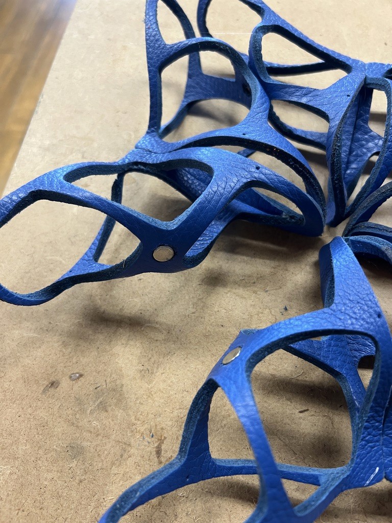 Utilized the holes and cutouts to redefine the source material as a variation of perforated leather and an element of porosity rather than condemning it as a deficiency or 'lack' of material.